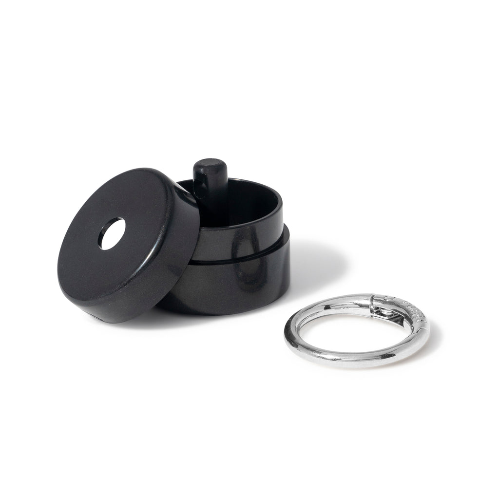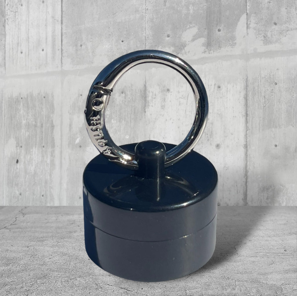 DIMENSIONS are 1.5"D x 1.5"W x 2.5"H can hold up to men's size 18 ring comfortably