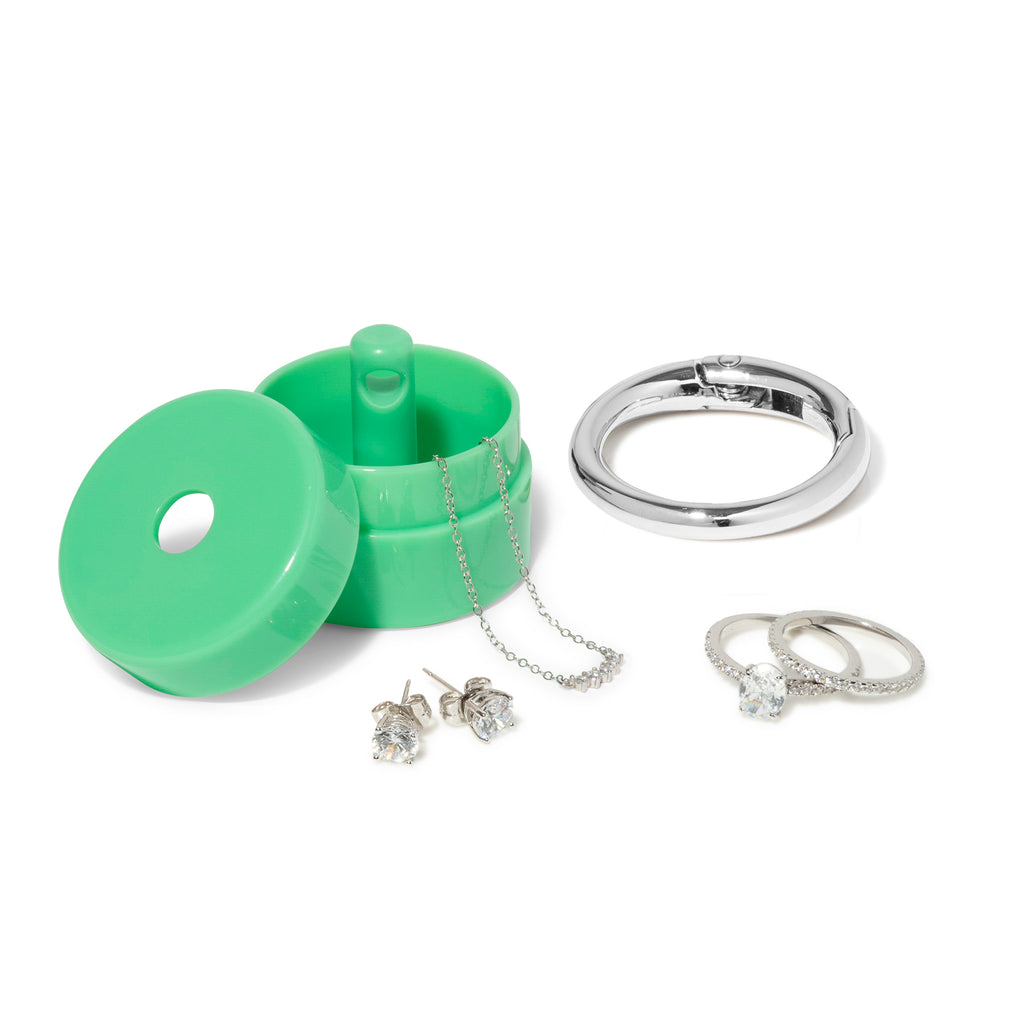 Stand out while you protect your small jewelry on-the-go with a Kelly Green Lion Latch!