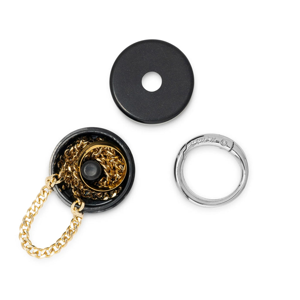 - A sleek gunmetal black Lion Latch to keep your tiny valuables safe while on-the-go