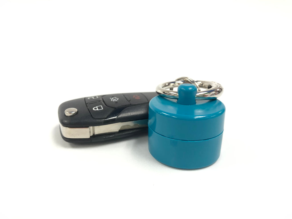 Protect your small jewelry on the go with a turquoise Lion Latch! Our patent protected product contains a custom carabiner ring that has to be fully removed before you can pull the lid completely off.