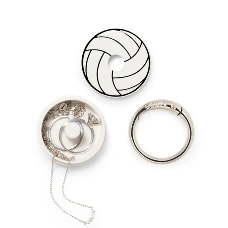Protect your small jewelry on the go with a special edition Volleyball Lion Latch! Our patent protected product contains a custom carabiner ring that has to be fully removed before you can pull the lid completely off.